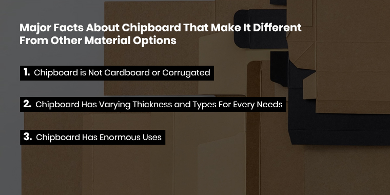 These include kraft, cardboard, paperboard, corrugated, rigid, and chipboard. Looking at all the material options, chipboard proves to be a decent option.